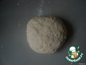 Замесить тесто, мука с водой, вымесить до эластичности, оставить на 10 минут.