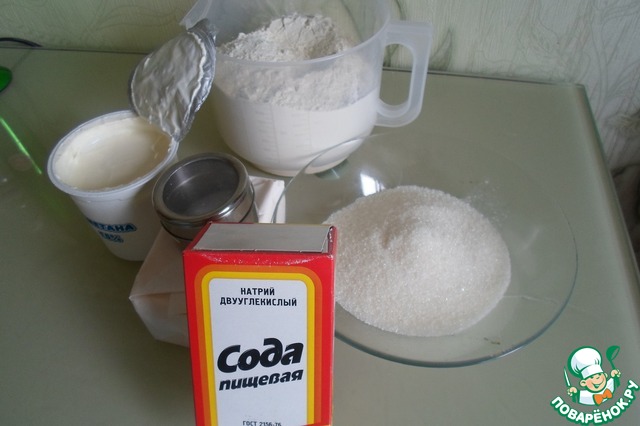 Соду смешать со сметаной и оставить на несколько минут. В это время смешать размягченное масло с сахаром и солью.