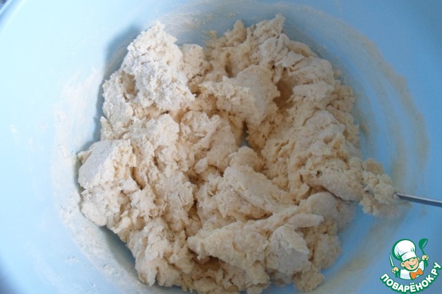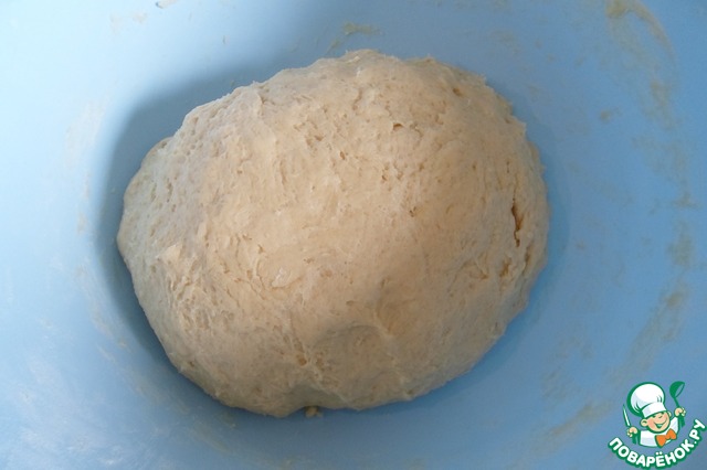 Теперь можно добавлять просеянную муку, постепенно замешивая мягкое, не липнущее к рукам тесто. Не стоит забивать тесто мукой, чтобы оно не получилось сухим.