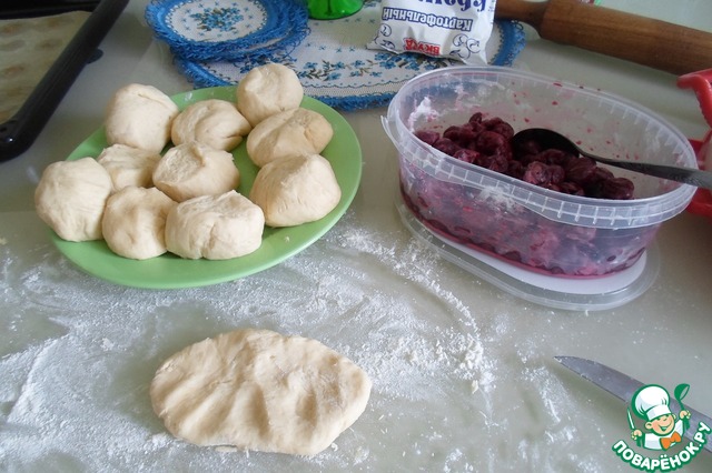 Тесто разделить на 15 равных частей. Лучше всего, если части будут равные по весу. Для этого взвести готовое тесто и определите вес каждого куска. Скатайте из теста колобки и отправьте на подпыленной мукой тарелке в холодильник. Работая с тестом, доставайте по одному кусочку.