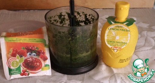 Здесь на фото я показала, какую желирующую смесь использовала, её нужно смешать с оставшимся сахаром (50 г). Сок я брала готовый, можно выжать из свежего лимона. -