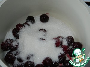 • Вишню помыть, удалить косточки, засыпать сахаром.
