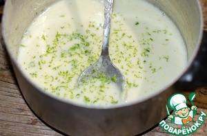 Желатин распустить в горячей каше, добавить цедру лайма и ваниль, перемешать.