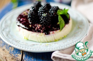 Готовый десерт полить ежевичным соусом, украсить ягодами ежевики, цедрой лайма и мятой.