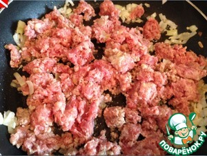 Добавляем фарш. Чуть-чуть присаливаем.