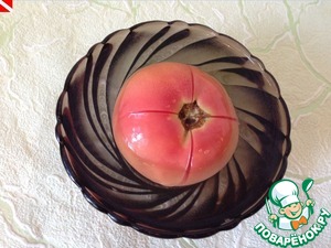 Помидор очищаем от кожицы. Мелко режем.