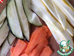 Займемся овощами. Нарезаем их тоненькими полосочками 2-3 мм в толщину.