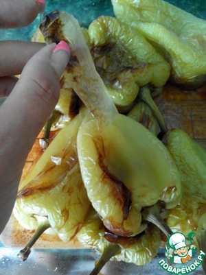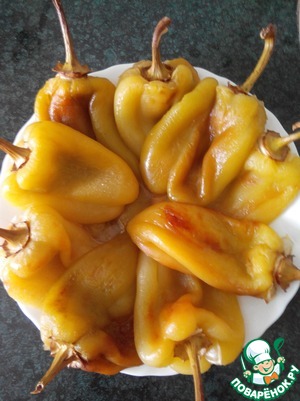 Вот наши перчики и готовы, оставляем их в закрытой духовке минут на десять, они "упадут" и легко будут чиститься.