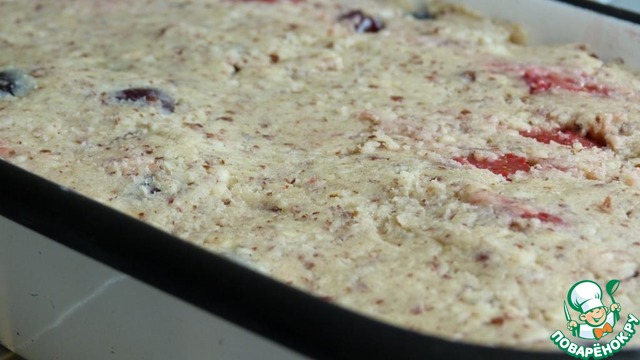 Выкладываем тесто на ягоды. Тесто прижать лопаткой.