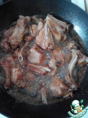 • Слегка отжав от маринада, обжариваем на растительном масле