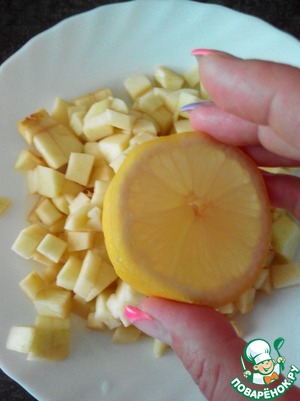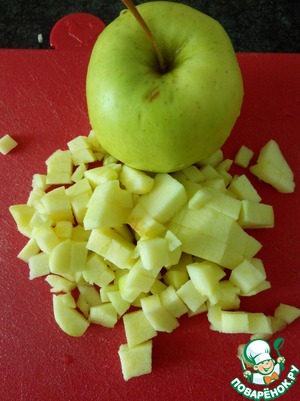 • Яблочки очищаем от кожуры и нарезаем кубиками