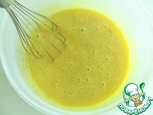 Яйца, растительное масло, ванильную эссенцию и сахар взбиваем венчиком до однородности.