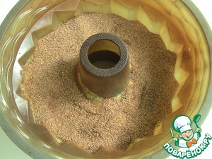 В форму (возьмите большую, кекс получается высоким) выливаем половину теста, сверху посыпаем сахарно-коричной смесью, затем остальное тесто.