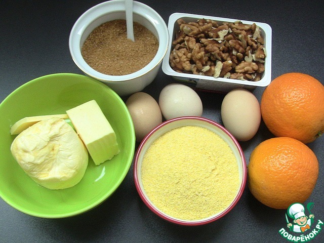 Ингредиенты для «Апельсиновый пирог с кукурузной мукой»: