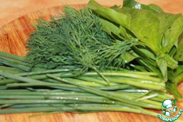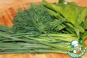 Лук, укроп и шпинат хорошо промойте и порежьте