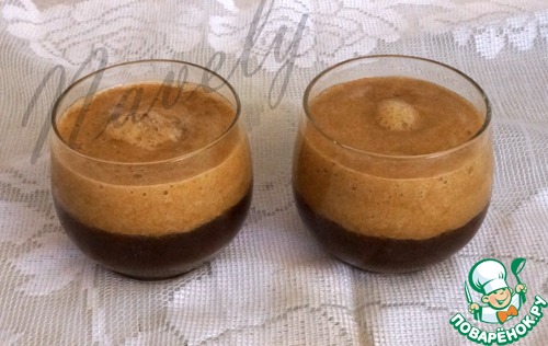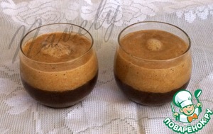 Выложить персики в миску, добавить половину (100 мл.) сваренного кофе и измельчить все блендером.