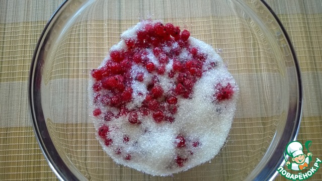 Красную смородину засыпать сахаром. Перемешать и дать постоять 5-10 минут.