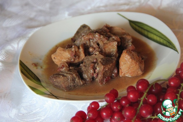 Рецепт «Запеченное в горшочках мясо с красной смородиной»: