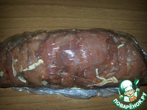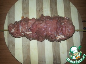Прошло час. Мясо надеть на шпажки как на фотке. После этого мясо ставим в целофан со шпажками а потом снять шпажку.