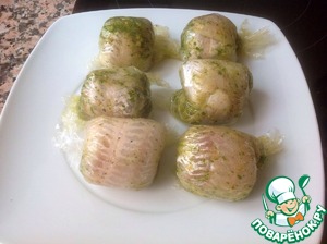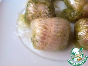 Сворачиваем филе рулетиками и заворачиваем в пленку
