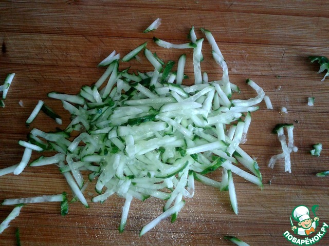 Огурец шинкуем на тёрке для корейской моркови;