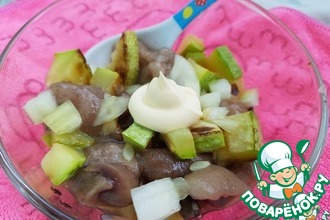 Добавляем майонез, специи, всё перемешиваем. При желании можно добавить соевый соус.