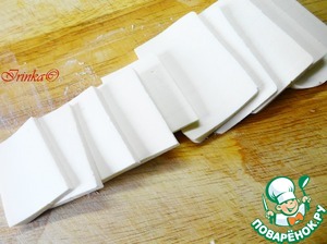 Сыр (у меня фетаки) нарезаем пластиками по величине помидоров и по количеству разрезов.