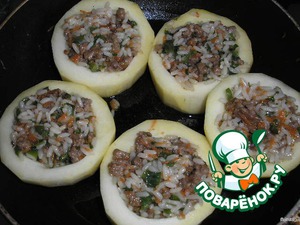 Начинку выкладываем в подготовленные кабачки. Сами кабачки подсолить, Начинка то уже соленая.