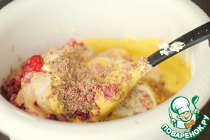 Яйца разделяем на белки и желтки. Желтки взбиваем с половиной сахара до увеличения в объеме в несколько раз. Белки с оставшейся половиной сахара взбиваем до твердых пиков.