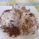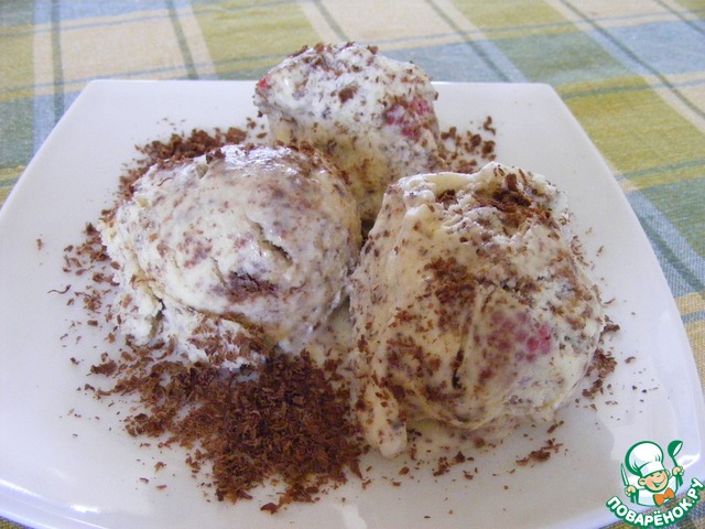 Подавайте десерт, нарезав его на порционные кусочки, или шариками, со свежими ягодами малины и растопленным шоколадом.