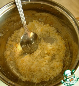 Цедру половины лимона смешиваем с сахаром. Хорошенько растираем, чтобы цедра могла отдать все свои ароматы.