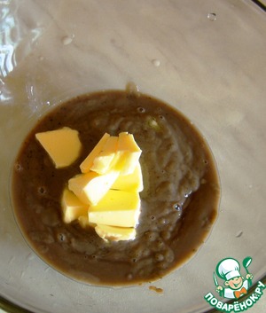 Слегка остужаем и добавляем сливочное масло комнатной температуры. Хорошо все перемешиваем до однородного состояния.