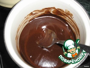 Сметану, сахар, какао варить на медленном огне примерно 5-7 минут, постоянно помешивая. Содержимое должно приобрести цвет молочного шоколада и немного загустеть.