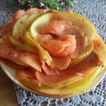 Ты знаешь, замечательно сочетается малосольная рыба с яблоком. Я просто в восторге!