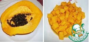 • Кстати, таким образом замаринованную папайю можно подать и как самостоятельный десерт, украсив листиками мяты!