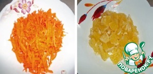 • Морковку натереть на крупной терке, наискосок, чтобы получилось покрупнее. Дольки апельсина очистить от пленок и нарезать кубиками. Смешать морковь, апельсин и папайю.