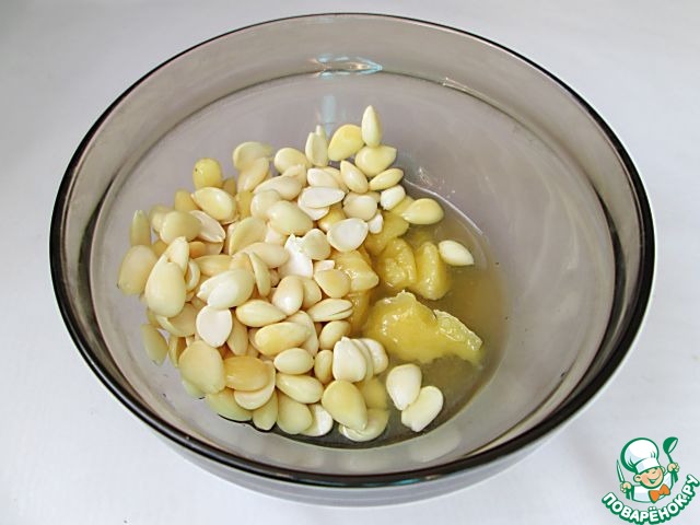 100 г сырого миндаля замачиваем на несколько часов в кипятке или оставляем на ночь в теплой воде.