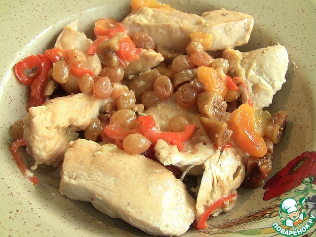 Рецепт «Куриная грудка, тушенная с сухофруктами»: