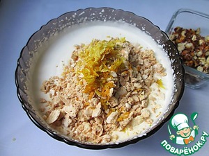 Аккуратно вручную перемешиваем сливки с измельченной цедрой и раскрошенным безе.
