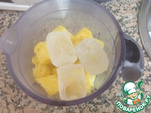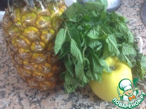 Выложить в миксер листья мяты, ананас, яблоко, 4-5 кубиков льда. Сахар по-желанию. Взбить коктейль
