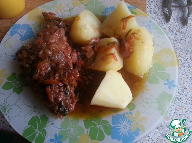 Подаем с любым гарниром. К тому же, помимо вкусного мяса, у нас будет замечательная подливка)