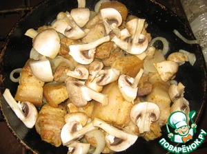 Добавляем свежие шампиньоны, перемешиваем, накрываем крышкой до полной готовности.