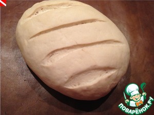 Выкладываем его на противень (если не пользуетесь формой), делаем надрезы, опять накрываем влажной тканью и оставляем для расстоя.
