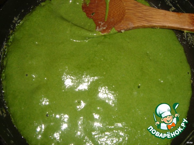 Смешать белый соус с шпинатом.