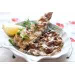 При подаче рекомендую выложить на тарелку соус, а сверху рыбку, тогда соус не будет сразу бросаться в глаза и шокировать своим цветом:) А уже когда попробуете соус, оторваться не сможете.