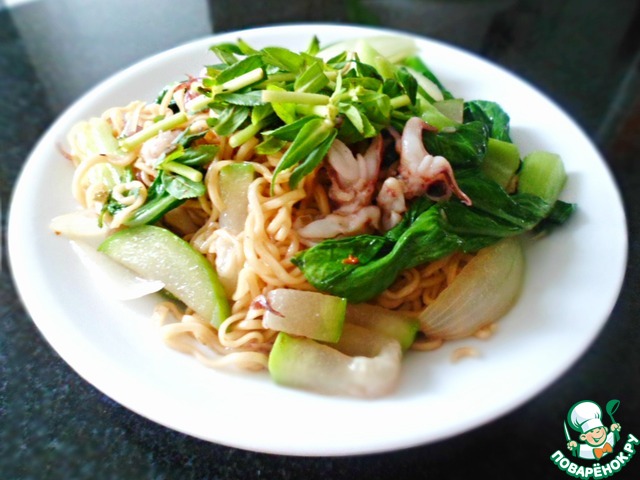 Лапша с овощами и морепродуктами по-вьетнамски