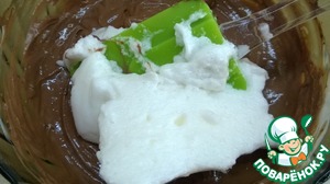 Добавить белки к шоколадной массе. Осторожно перемешайте лопаточкой. -