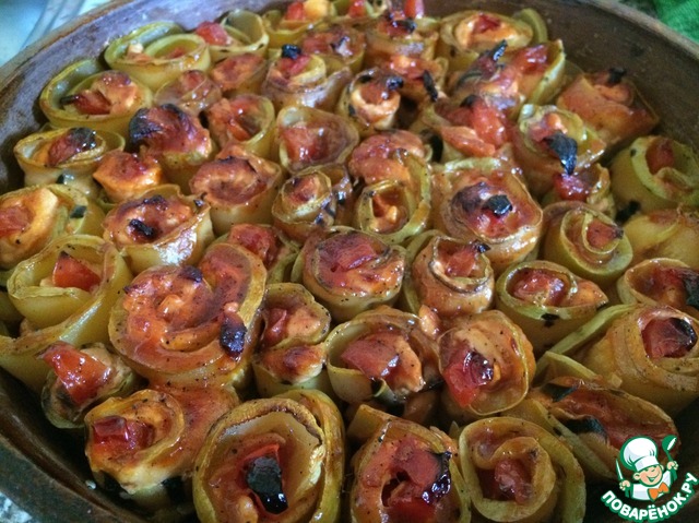 П. С. не нужно заливать блюдо никаким бульоном или водой! Кабачки и помидоры при запекании выделят достаточно сока, который смешается с расплавленным сыром и превратится в очень вкусный соус! -
