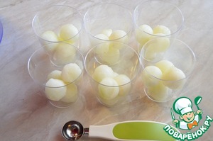 Специальной ложечкой вырезать из дыни шарики.