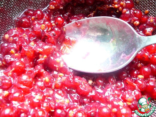 Так как порция небольшая, я не стала пользоваться соковыжималкой, а просто протерла смородину через сито. Получился густой сок с мякотью.